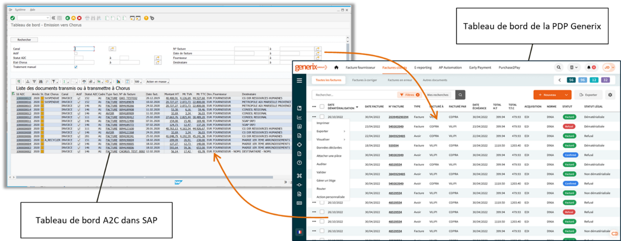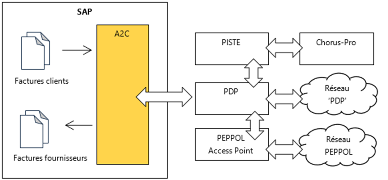 - A2C transmet les factures clients émises par SAP vers la PDP