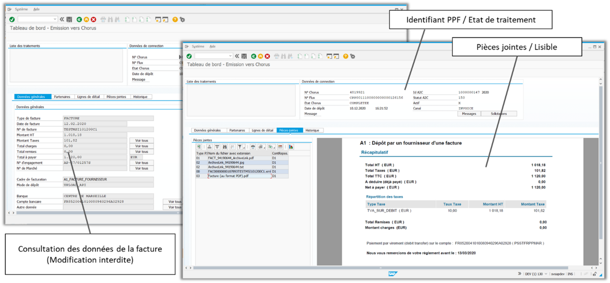 - Les factures fournisseurs sont téléchargées au format UBL et mises à disposition de SAP dans un format IDoc