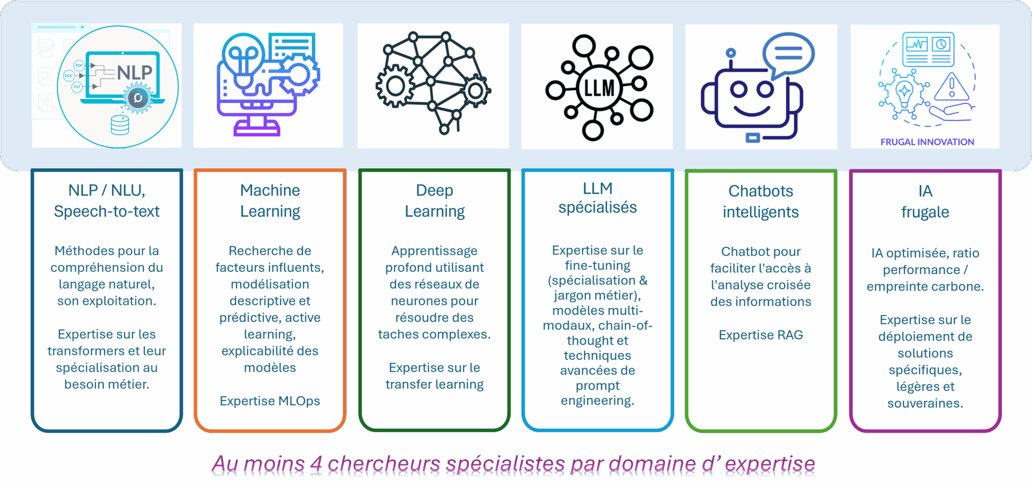 Seenovate dispose d’une expertise avancée en Intelligence Artificielle, portée par une activité de R&D structurée, avec des équipes spécialisées par domaine d’expertise.